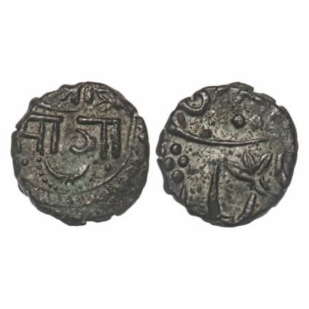 Baroda, Copper Paisa, 8.06g, Sayaji Rao II (AH 1235-1264/1819-1847 AD), Amreli Mint, AH 1257, nagari 'Sa Ga', between crescent above and scimitar and garland below, two different leaf petal on either sides. KM C 29.6. About Very Fine, Very Scarce.