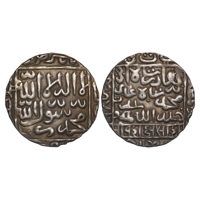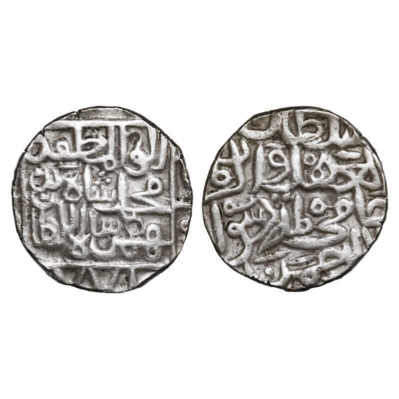 Bengal Sultanate, Silver Tanka, Sikandar Bin Ilyas (AH 758-792 / AD 1357-1389), al Balad Firuzabad Mint. Obv: shah sikandar ibn ilyas shah al-sultan, Rev: al mujahid fi sabil al rahman. G&G B165. About Very Fine, Scarce.