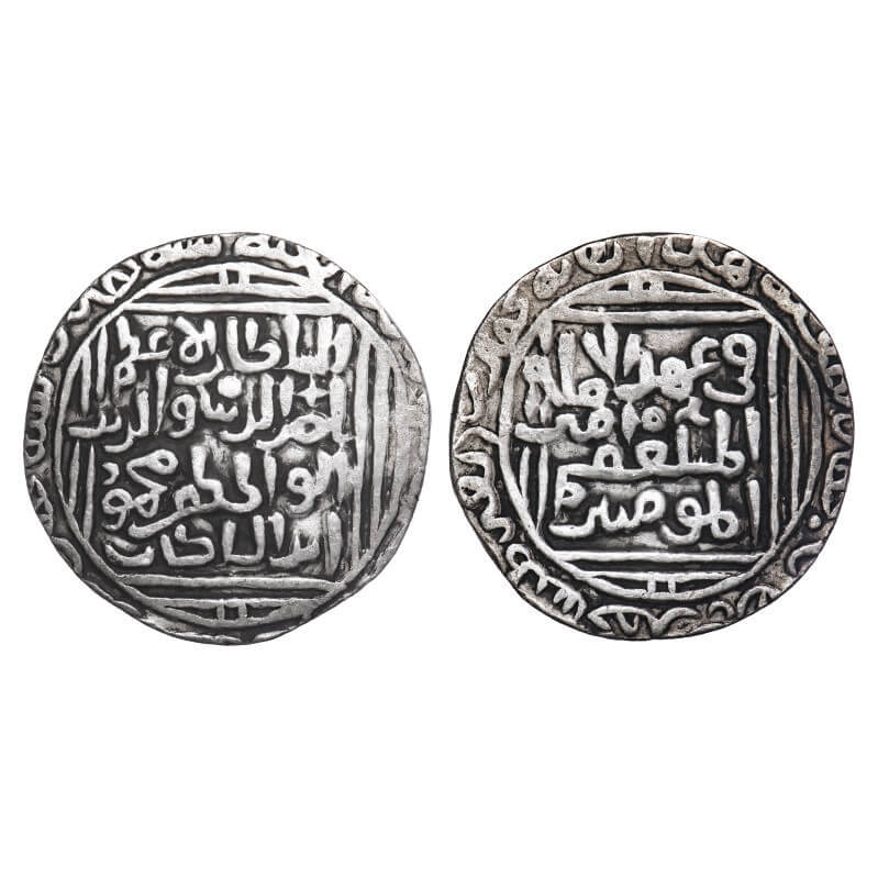 Dehli Sultanate, Silver Tanka, 10.69g, Nasir Al Din Mahmud (AH 644-664 / 1246-1266 AD), Fi Ahd type. Hadrat Dehli Mint. G&G D137 type. Very Fine, Very Scarce.