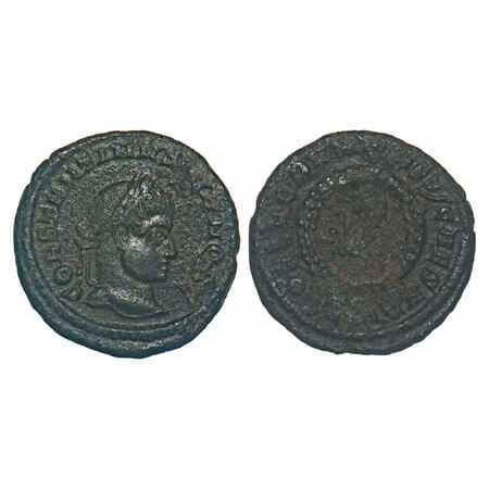 Roman Imperial Coin, The constantinian Era: Constantine I The Great AE Copper Coin. Siscia Mint. 321-324 AD, Copper, 3.03g, 18.59x18.83mm, Obv: CONSTANTINVS AVG, laureate head right. Rev: D N CONSTANTINI MAX AVG, around wreath enclosing VOT / XX, ESIS Star in exergue. Very Fine, Scarce.