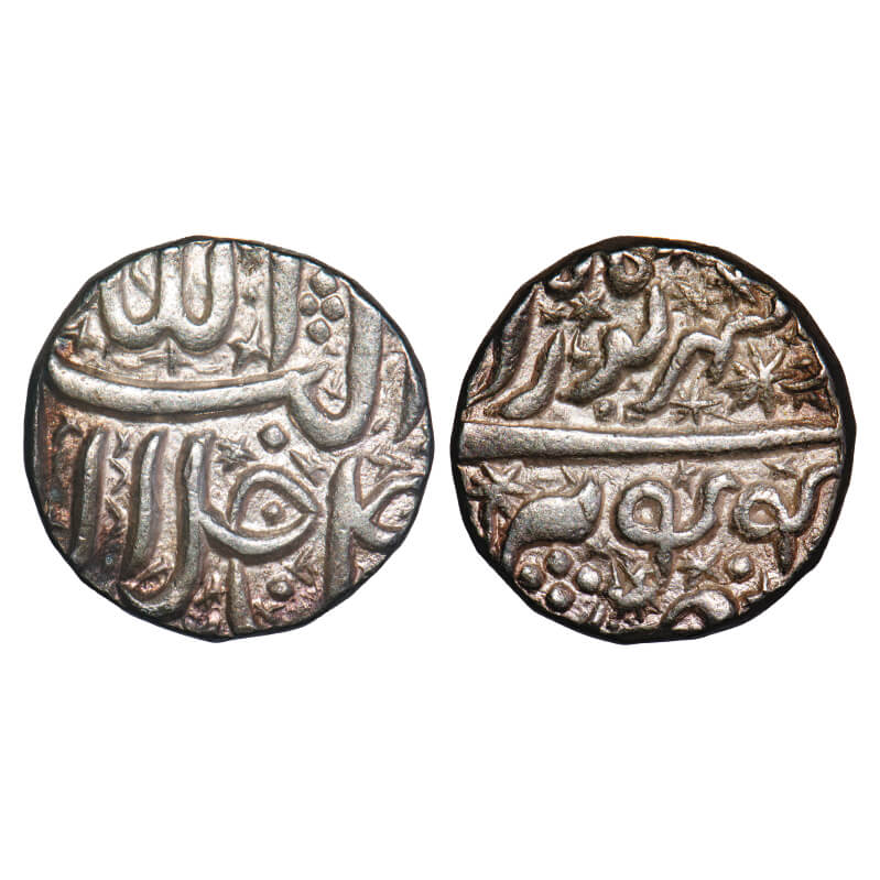 Humayun, Silver Shahrukhi, (AH 937-963 / 1530-1556 AD) 3.90g, (Agra) Mint, Obv: Kalima within circle & names of the four Caliphs around, Rev: Name of the ruler in Mihrab-shaped cartouche. Very Fine, Rare.