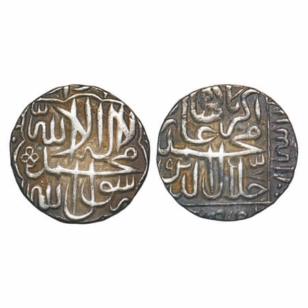Humayun, Silver Shahrukhi, (AH 937-963 / 1530-1556 AD) 3.90g, (Agra) Mint, Obv: Kalima within circle & names of the four Caliphs around, Rev: Name of the ruler in Mihrab-shaped cartouche. Very Fine, Rare.
