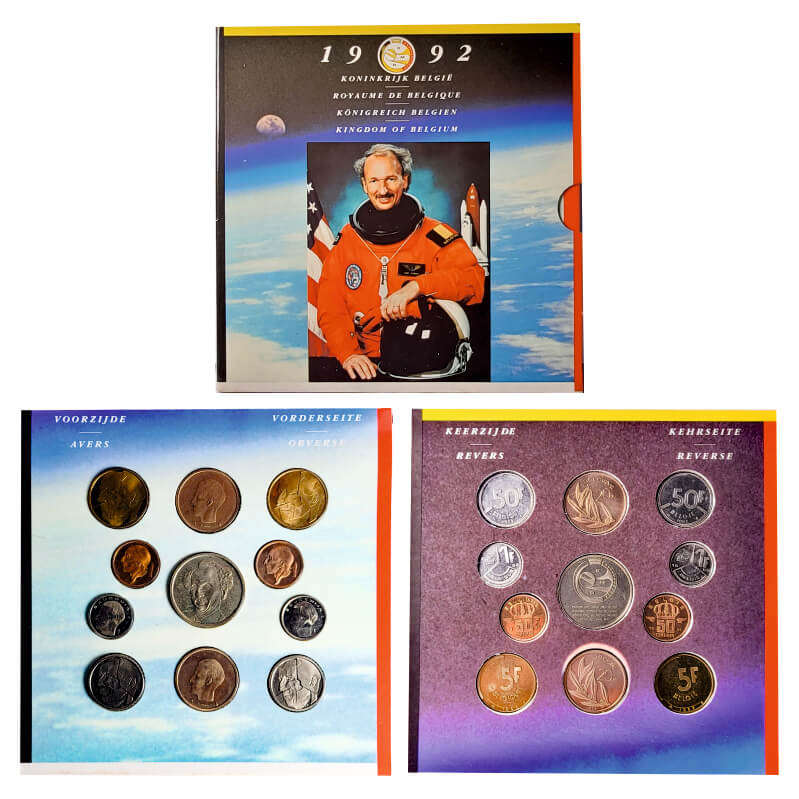 Belgium, 10 coins and token, mint set 1992, Mixed Metals "Man In Space.". Unc in blister pack. Scarce.