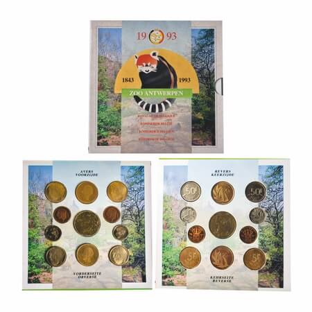 Belgium, 10 coins and token, mint set 1993, Mixed Metals "Zoo Antwerpen.". Unc in blister pack. Scarce.