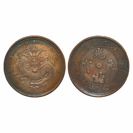 China-Hupeh Province, Copper 10 Cash, 7.96g, Kuang hsu, ND (1902-1905 issue), KM 120. Very Fine, Scarce.