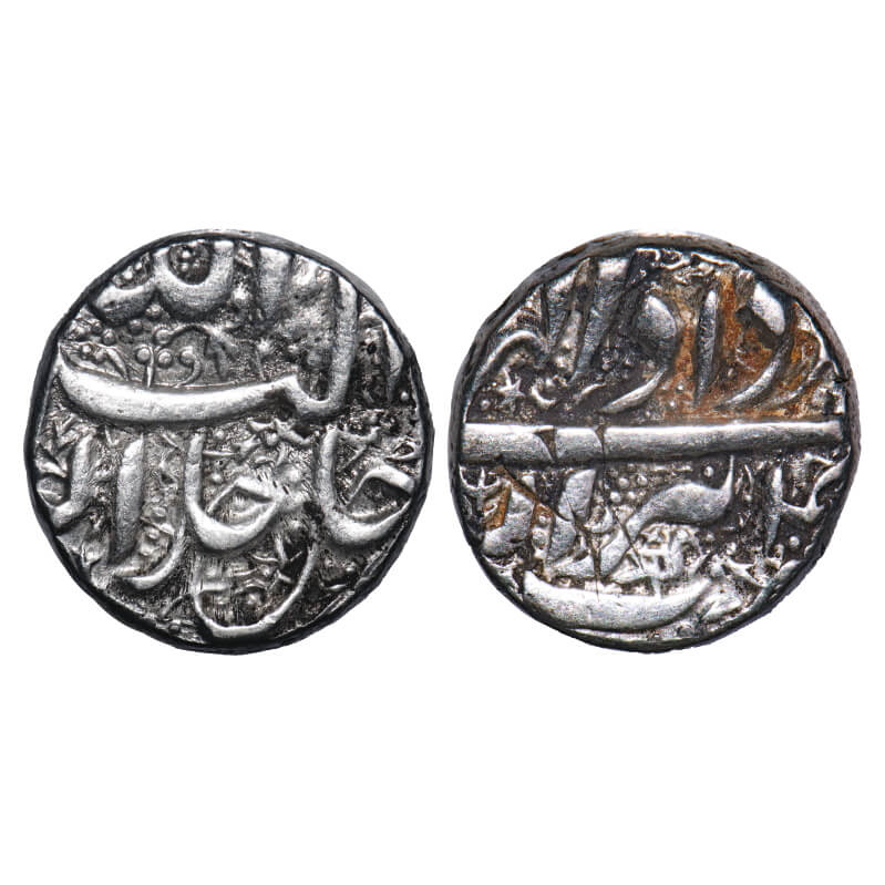 Humayun, Silver Shahrukhi, 4.49g, (Qandahar) mint off flan, Obv: Kalima with names of the four Caliphs around, Rev: Name of the ruler in Mihrab-shaped cartouche. About Very Fine, Rare.