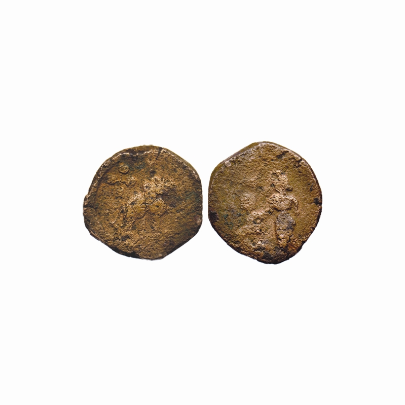 Pre Satavahana (c. 200 BC), Bena a river goddess from Vidarbha (Paoni), Copper, 7.35gm, Obv: Elephant to right with an ujjaini symbol on its back, Rev: Goddess holding the pair of fish with hand outstretched and traces of Barhmi legend 'Bena' to her right in perpendicular aligment. Bena is the name of river in Vidarbha.