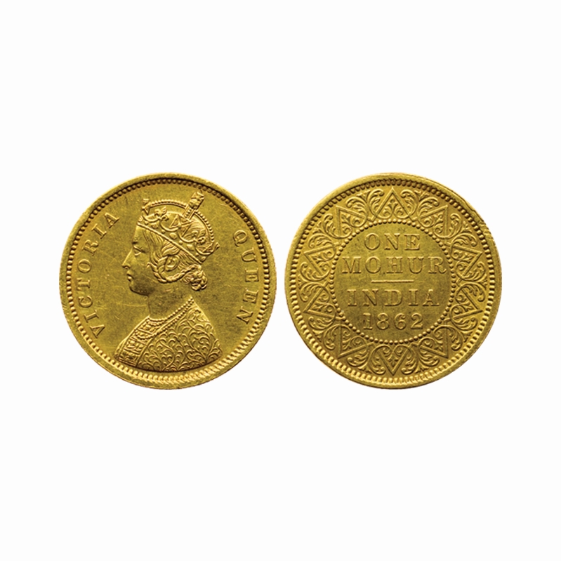 Victoria Empress, Gold Mohur, 1877, (Two flower type & V in relief), F.Prid. 14.