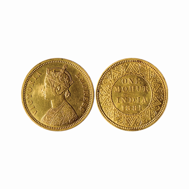 Victoria Empress, Gold Mohur, 1881, (Two flower type & V in relief), F.Prid. 18.