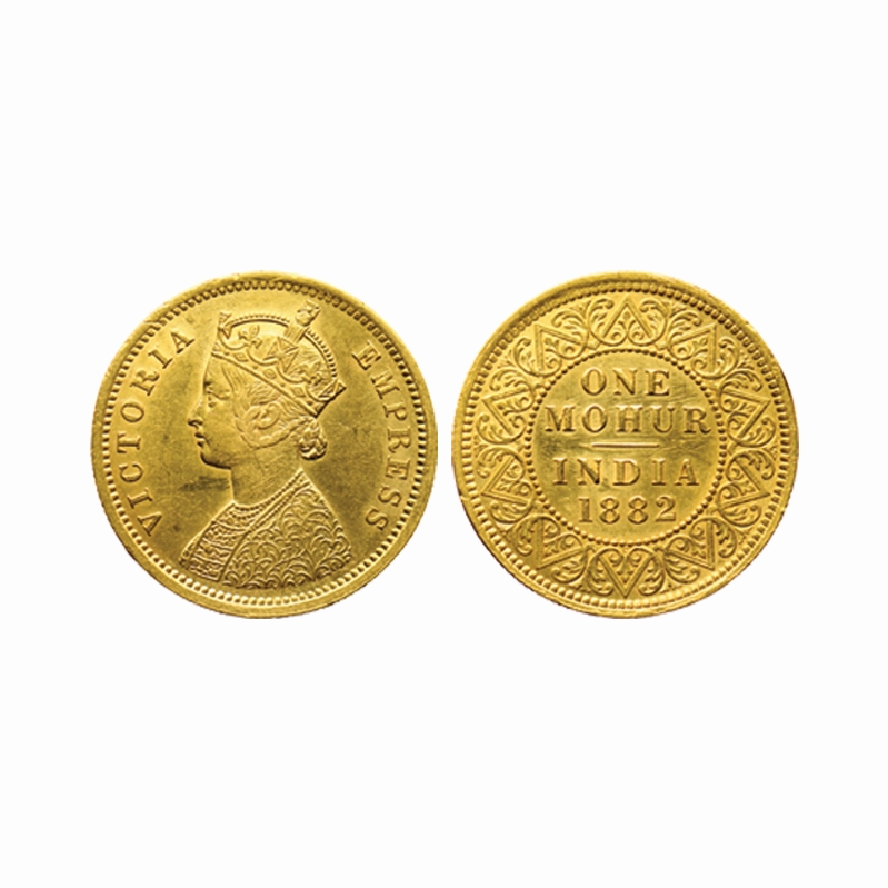 Victoria Empress, Gold Mohur, 1882, (Two flower type & V in relief), 'C' Privy mark, Calcutta Mint. F.Prid. 19.