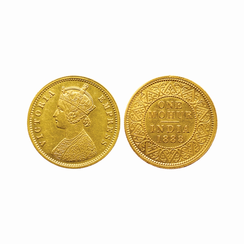 Victoria Empress, Gold Mohur, 1888, (Two flower type & V in relief), F.Prid. 22.