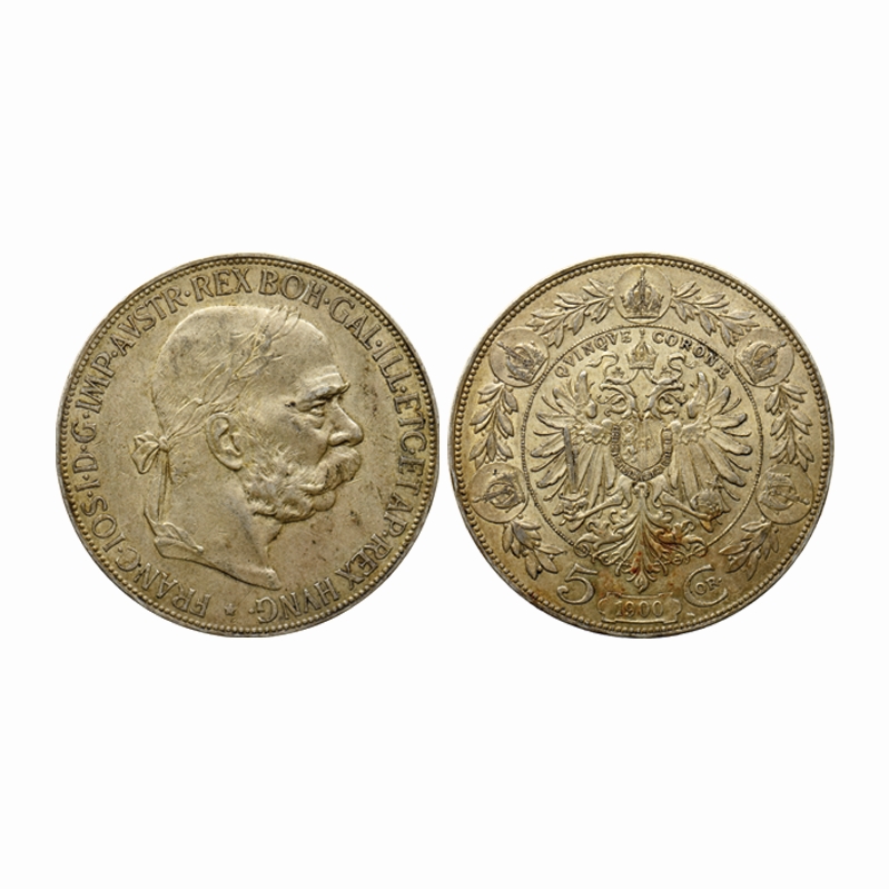 Austria, Silver 5 Corona, 23.96 gm (0.900 silver), 1900, Obv: Bust to right , Rev: Crest, date and denomination. KM 2807.