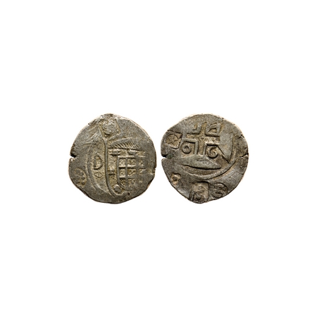 Indo Pourtuguese, Silver Rupia, 11.12gm, D. Pedro II , ND (unseen), Damao issue, Crowned arms in branches on obverse, date within voided florested cross on reverse. A.Gomes (page 559) 11.01/ KM unlisted.