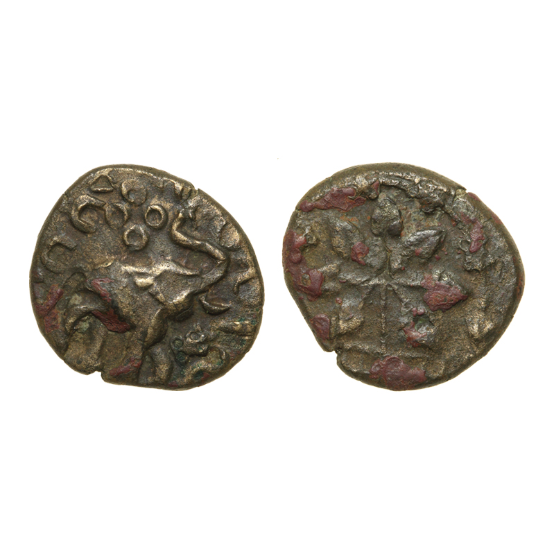 Pre - Satavahana, Usabhamitra (c. 200 BC), Copper, 2.28gm, Nandurbar Region, Obv: Elephant facing right above Brahmi legend, Rev: Elephant in dotted border. Unpublished.