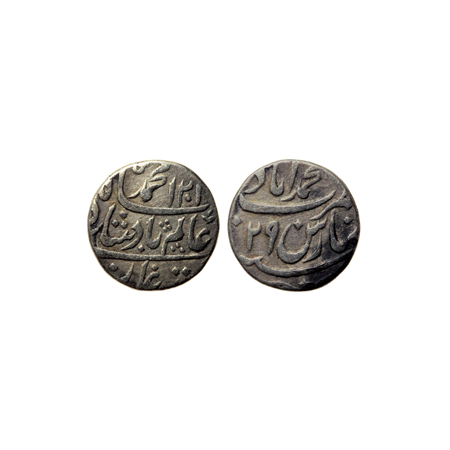 Bengal Presidency, Silver 1/4 Rupee, 2.70gm, Muhammadabad Banaras Mint, in the name of Shah Alam II, AH 1201 / RY 29. F.Prid Unlisted.