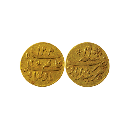 Bengal Presidency, Gold 1/4 Mohur, 3.04gm, in the name of Alamgir II, Murshidabad (Calcutta) Mint, AH 1204 / RY 19. F.Prid 64.