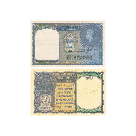 British India, George VI, 1 Rupee, Watermark head facing right, Serial number in Black, Signed by C.E.Jones, Serial no. V 42 / 900000, Fancy serial number. ( J & R 4.1.1A).