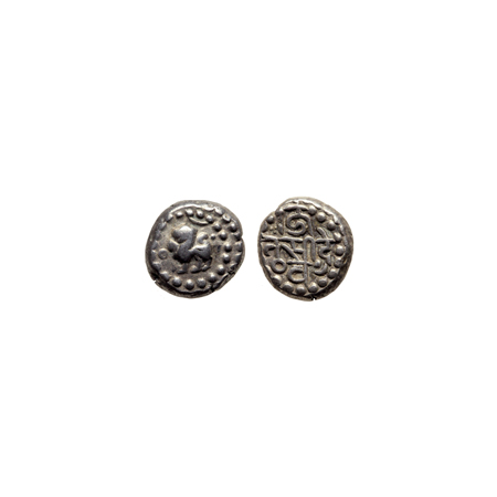 Chalukyas of Gujarat, Siddharaj Jayasimha (c. 11th AD), Silver Jital, 0.36gm, Obv: Elephant walking to right, Rev: Nagari legend.
