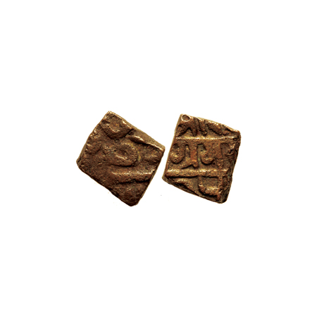 Yadavas of Tribhuvangiri, Kumarpal (11th Cent. AD), Base Gold Dinar, 4.15gm, Obv: Seated goddess Lakshmi, Rev: Nagari legend in three lines 'Sriman Kumarpaladeva'.