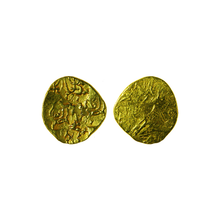 Kadambas of Hungal, Gold Fanam, 0.54gm, Obv: Mythical Lion, Rev: Flower.