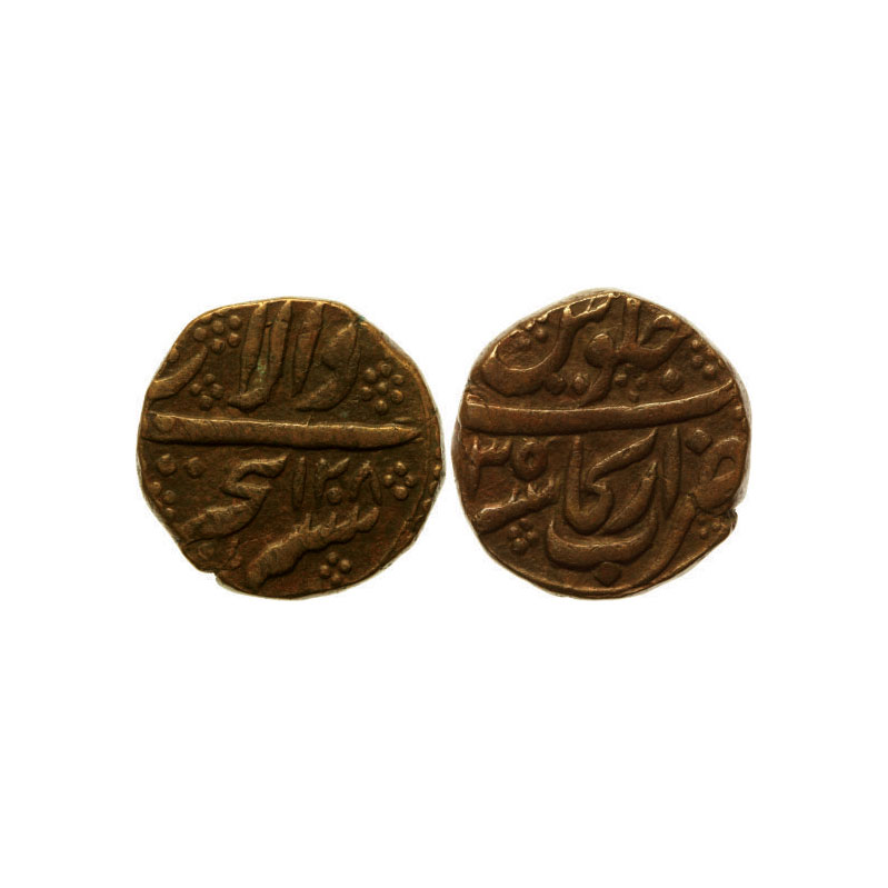 Arcot, Copper Paisa, 13.18gm, Muhammad Ali (AH 1165-1209/1751-1795 AD), Arcot Mint (Minted at Madras-Tiruvallur Mint), AH 1208/Ry 35, with 'Wala' on top on obv. KM 23. Very