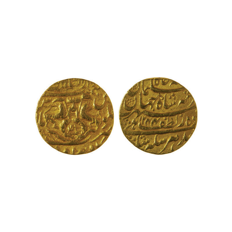 Awadh, Gold Mohur, 10.68gm, Nasir ud Din Haidar, in the name of Sulayman Jha, AH 1244/RY Ahad (1), Suba Awadh Darus Sultanat Lakhnau Mint. KM 190. Unlisted Date.