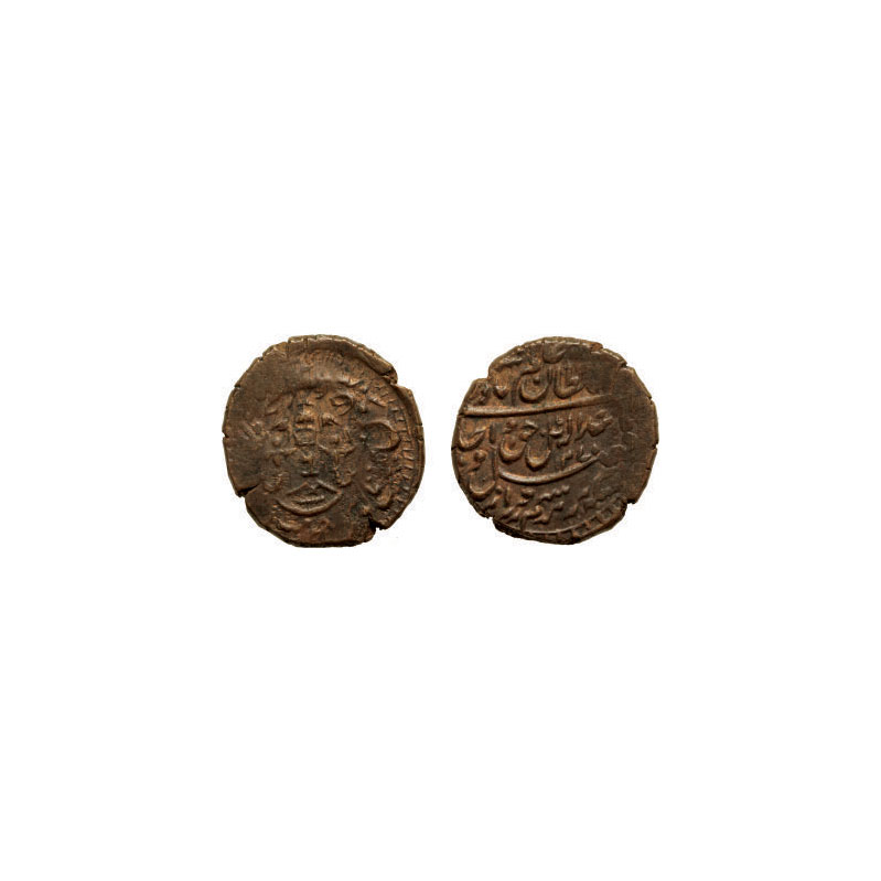 Awadh, Copper 1/4 Falus, 3.05gm, Wajid Ali Shah (AH 1263-1272/1847-1856 AD), Bait us Sultanat Lakhnau Mulk Awadh Akhtar Nagar Mint, AH 1270/RY 7. KM 347.