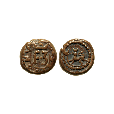 Indo Danish, Copper 2 Kas, 1.90gm, Frederik III, 1667. Obv: Crowned F3 surrounded by lower half circle and ANO 1667, dot between F and 3. Rev: Crowned Norse lion on curved battle axe, to left, in beaded circle. J.C.F. Gray 106/KM 125.
