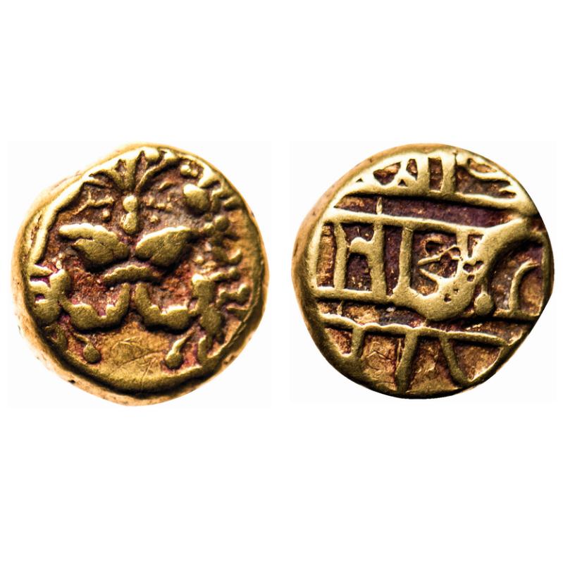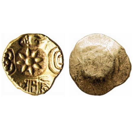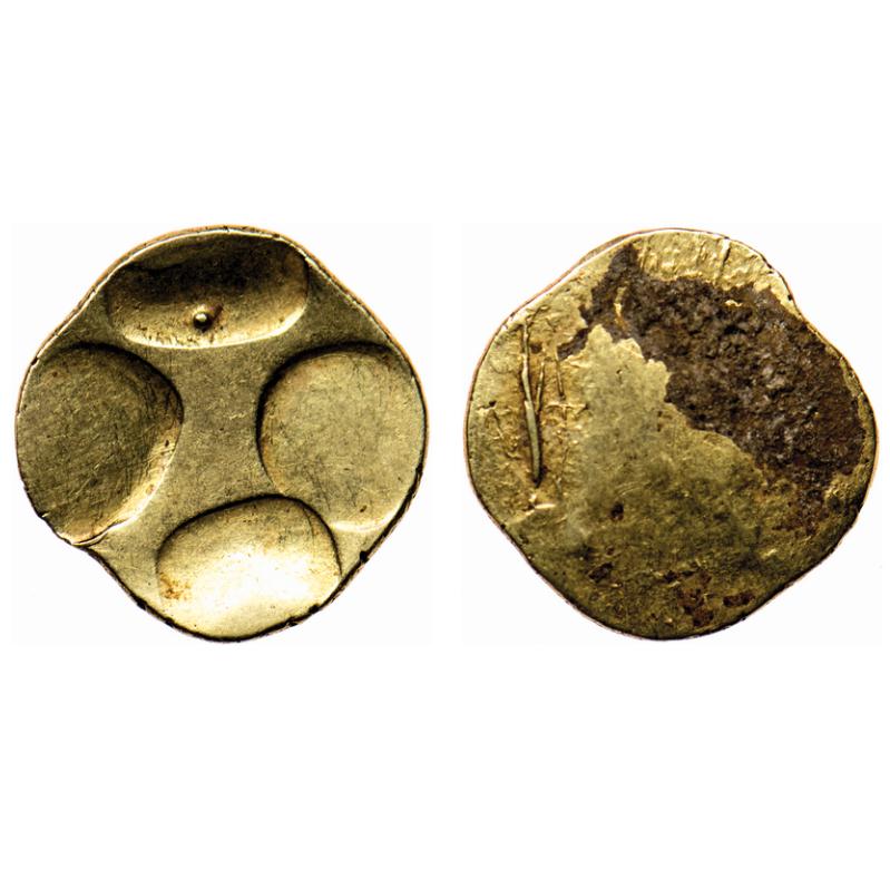 Paramaras of Vidarbha, Jagadeva (c. 12th century AD), Gold Pagoda, 3,64gm, Obv: four blank space for symbol striking, Unusual Uniface. Extremely Fine, Scarce.