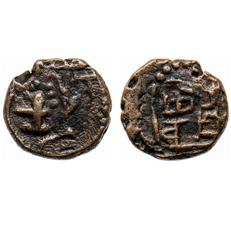 Vijayanagar, Feudatory of Chiefs, Copper Kasu, 2.26gm, Obv: Discus, Rev: Ankusa. K.Ganesh 12.53. Extremely Fine, Rare.