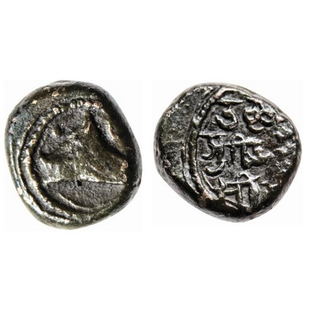 Hoysalas, Anonymous Issue, Silver Tara, 0.15gm, Obv: Crude lion walking to right, Rev: Kannada numeral 1 with stroke. K. Ganesh 8.35. Extremely Fine, Scarce.