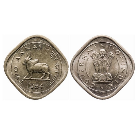 2 Annas, 1954, Copper Nickel, 5.90gm, Bombay Mint. Uncirculated, Scarce.
