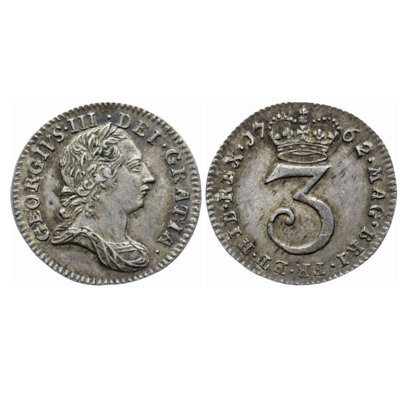 Great Britian, Silver, 3 Pence, 1.50gm, 1762, King George III. KM 591. pg 581. Extremely Fine, Rare.