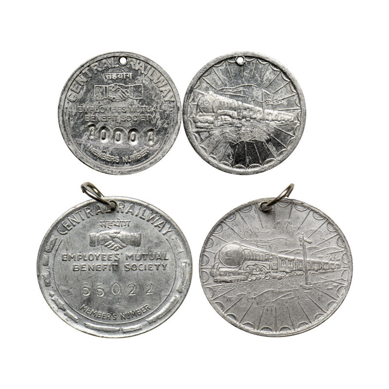Railway Tokens, Aluminium (2 Pcs), 8.50gm, Central Railway, Employees Mutual Benefit Society members token with serial numbers. Extremely Fine, Scarce.