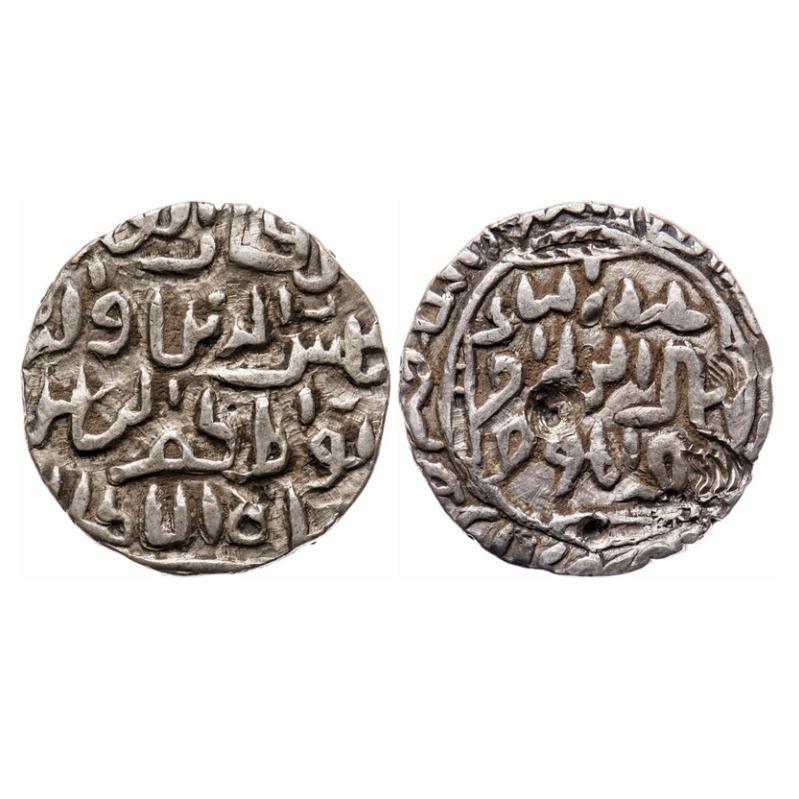 Bahamani Sultanate, Silver 1/6 Tanka, 1.72g, Muhammad Shah I, ( AH 760-777 / 1359-1375 AD), Mint unseen, Obv: binah din illah, Rev: abul muzaffar muhammad shah. G&G BH 31. About Very Fine, Rare.