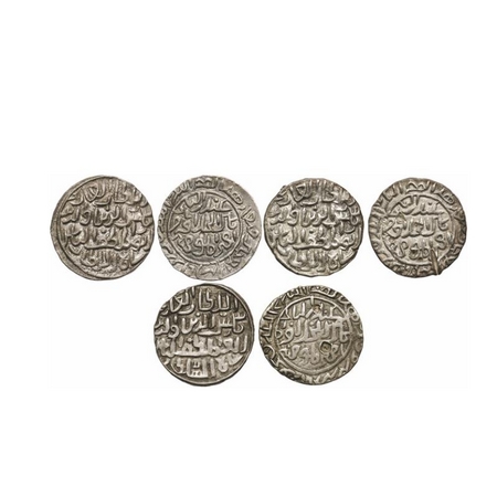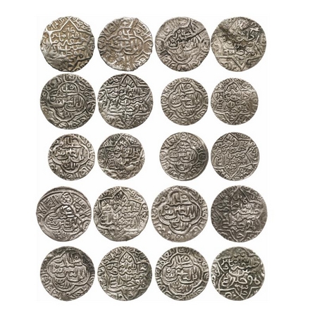 Bengal Sultanate, Silver Tanka (10 Coins), Sikandar Bin Ilyas (AH 758-792 / AD 1357-1389), AH 781, 783, Arsah Satgaon Mint. Obv: Sikandar shah ibn ilyas shah al-sultan, Margin: al-imam al-a'zam al-'adl abu'l mujahid, Rev: yamin khalifat allah nasir amir al-mu'minin khallada mulkahu G&G B188. About Very Fine, Scarce.