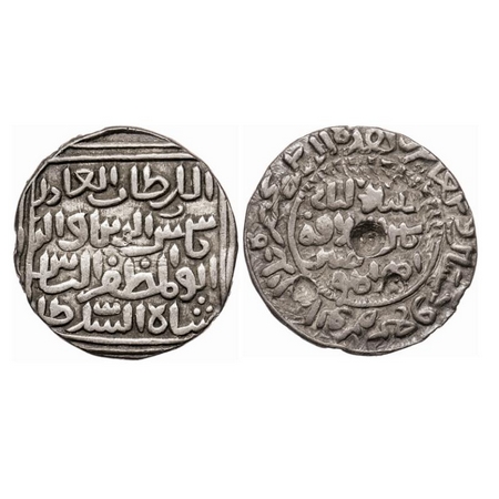 Bengal Sultanate, Silver Tanka, 10.83g, 'Ala' Al-Din 'Ali (AH 710-746 / AD 1339-1345), AH 743, Al Balad Firuzabad Mint. Obv: al-sultan al-a'azam 'ala' al-dunya wa'l din abu'l muzaffar ' alishah al-sulltan, Rev: Sikandar al-zaman al- makhsus ba-'inayat al-rahman nasir amir al-mu'minin. G&G B141. About Very Fine, Scarce.
