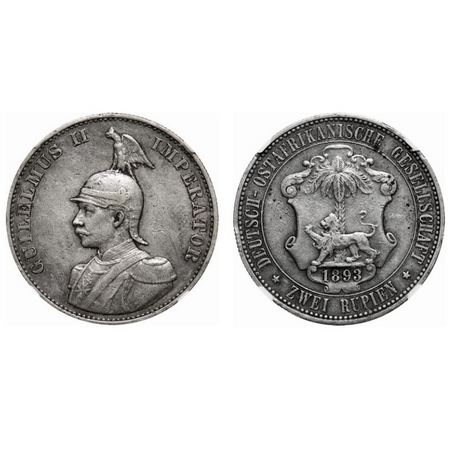 German East Africa, Silver (0.917 silver) 2 Rupien, 1893, Wihelm II. KM 5. NGC slabed XF details with obverse scractched, Rare.