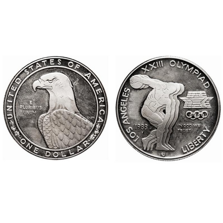 U.S.A., Silver Dollar, (0.900 Silver), 1983, Los Angeles, Olympiad XXIII series. Proof, With box, Scarce.