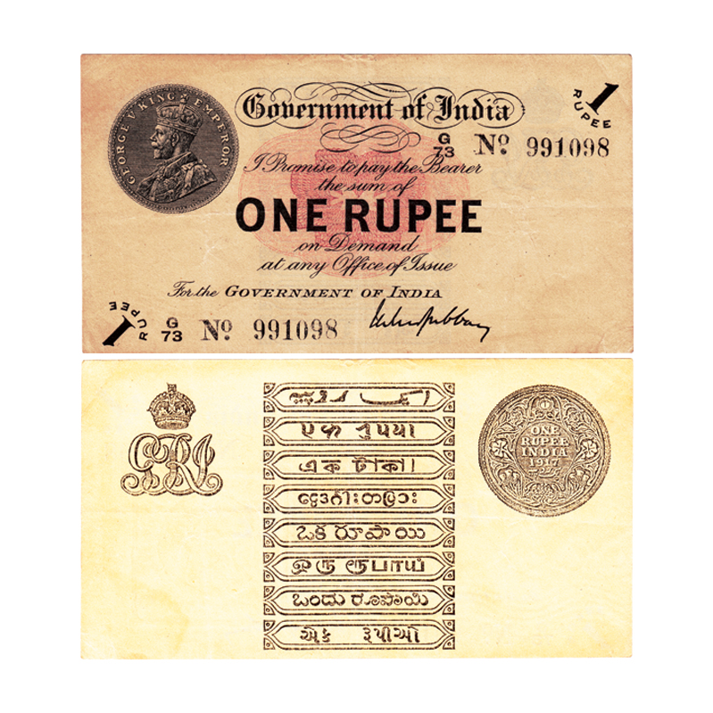 British India, George V, 1 Rupee, 1917. Signed by M.M.S.Gubbay, Serial No G73 991098 correct Gujarati, enclosed star in watermark. J&R 3.1.1B,