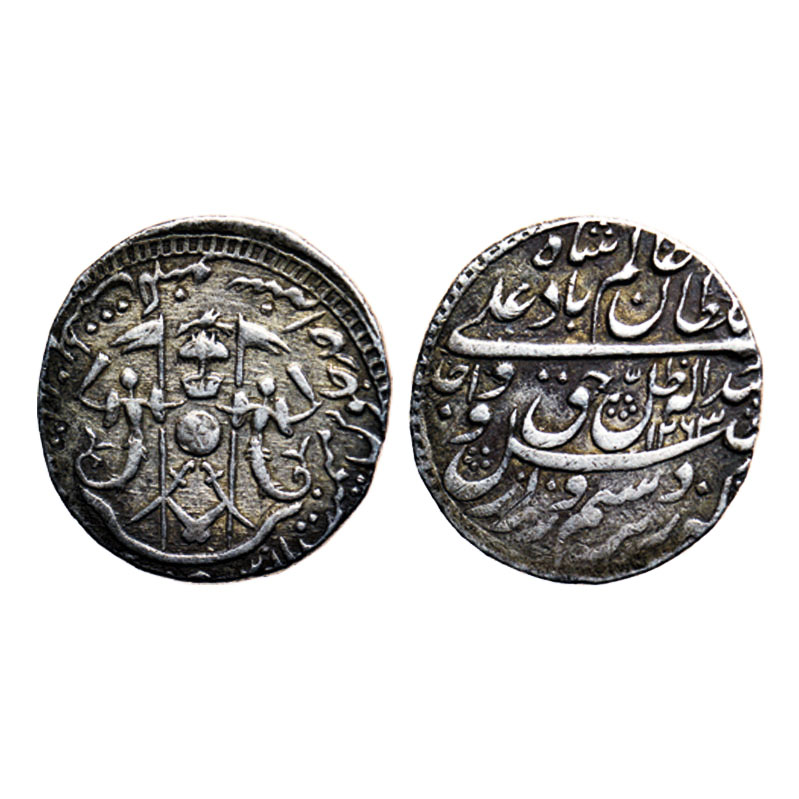 Gwalior, Silver Rupee, 10.71gm, Jean Baptiste Filose, Shadhora or Sabalgarh Mint, in the name of Shah Alam II, RY 34, battle axe and sword on rev. S.Bhandare JONS 198.