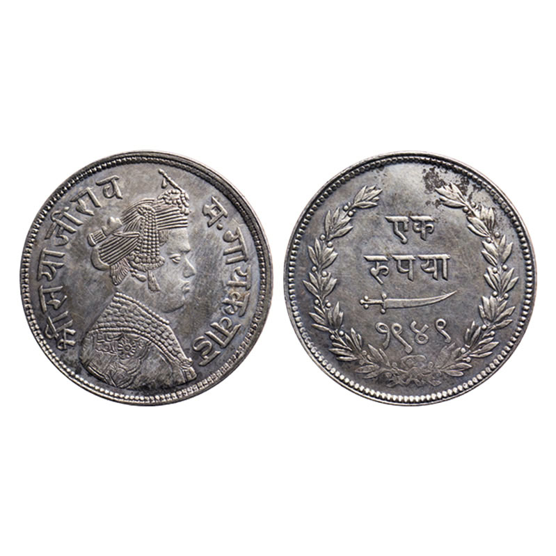 Baroda, Silver Rupee, 11.28gm, Sayaji Rao III, VS 1949, Large flan. KM Y36.