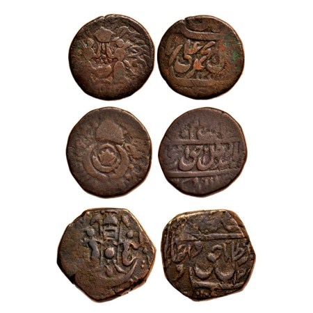 Awadh, Copper Falus/Paisa (3 coins), Muhammad Ali, Amjad Ali and Wajid Ali Shah, Lakhnau Mint, . KM C72, 95 & C112.1.