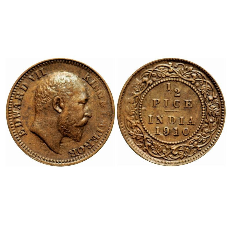 Edward VII, Bronze, 1/2 Pice, 1910, Calcutta Mint, No mint mark. F. Prid 744. GK 1011. Brilliant Un...