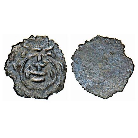 | Pallava, (6-8 Cen AD), Potin, 0.22g, 11.33x11.15mm, Obv: A shrivatsa on a platform between two lamps, All within a circular border, Traces of an undertype, Rev: Uniface. A very interesting Pallava specimen. Unlisted in major publications. Very Fine+, Very Rare. |