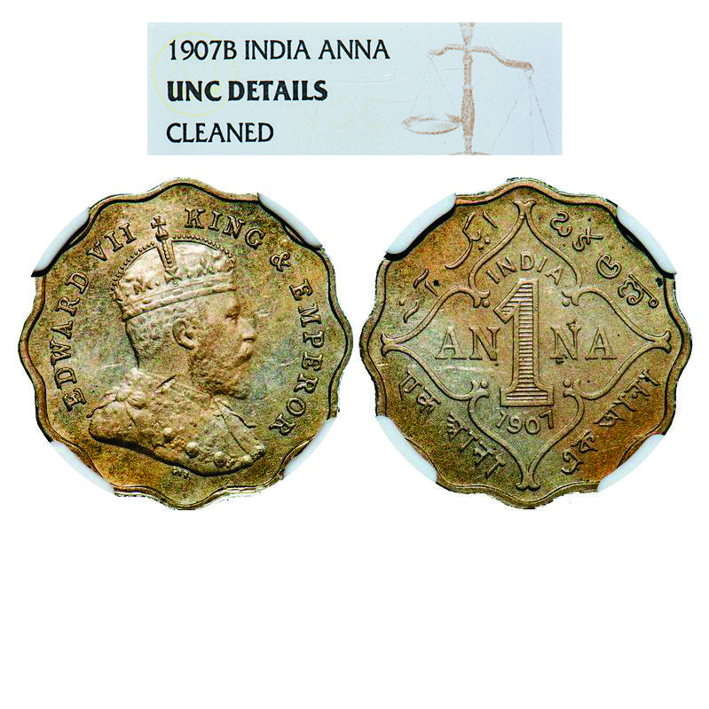 Edward VII, Copper-Nickel, 1 Anna, 1907, Bombay Mint, 'B' incused. GK 990. NGC Slabbed UNC Details. Scarce.