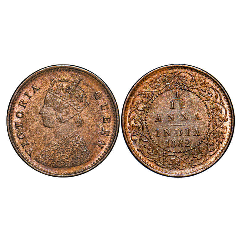 Victoria Queen, Copper, 1/2 Pice, 1862, (21.16 mm), Calcutta Mint, A/I. GK 401. Extremely Fine. Sca...
