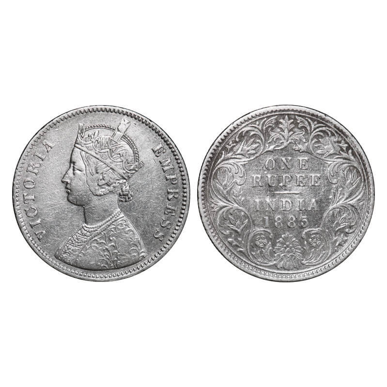 | Victoria Empress, Silver, Rupee, 1885, Calcutta Mint, A1/I, 'C' incused, Top stroke of numeral 5 short. GK 518. Very Fine+, Cleaned. Scarce. |