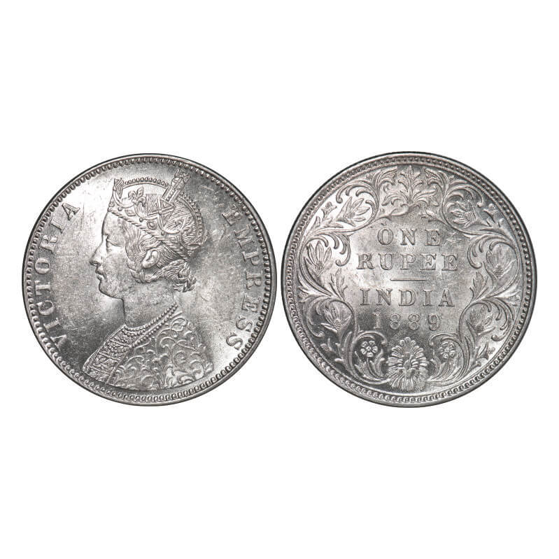 Victoria Empress, Silver, Rupee, 1889, Bombay Mint, C2/I, 'B' incused. GK 564. Almost Uncirculated. Scarce.