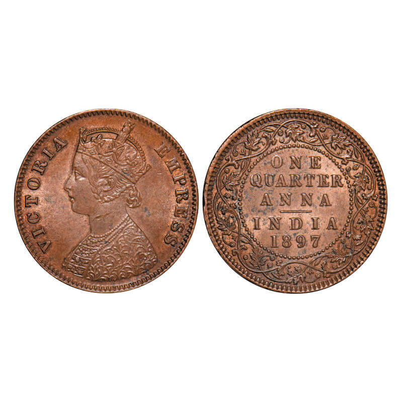 Victoria Empress, Copper, Quarter Anna, 1897, Calcutta Mint, B/II, No mint mark GK 856. Extremely Fine+. Scarce.